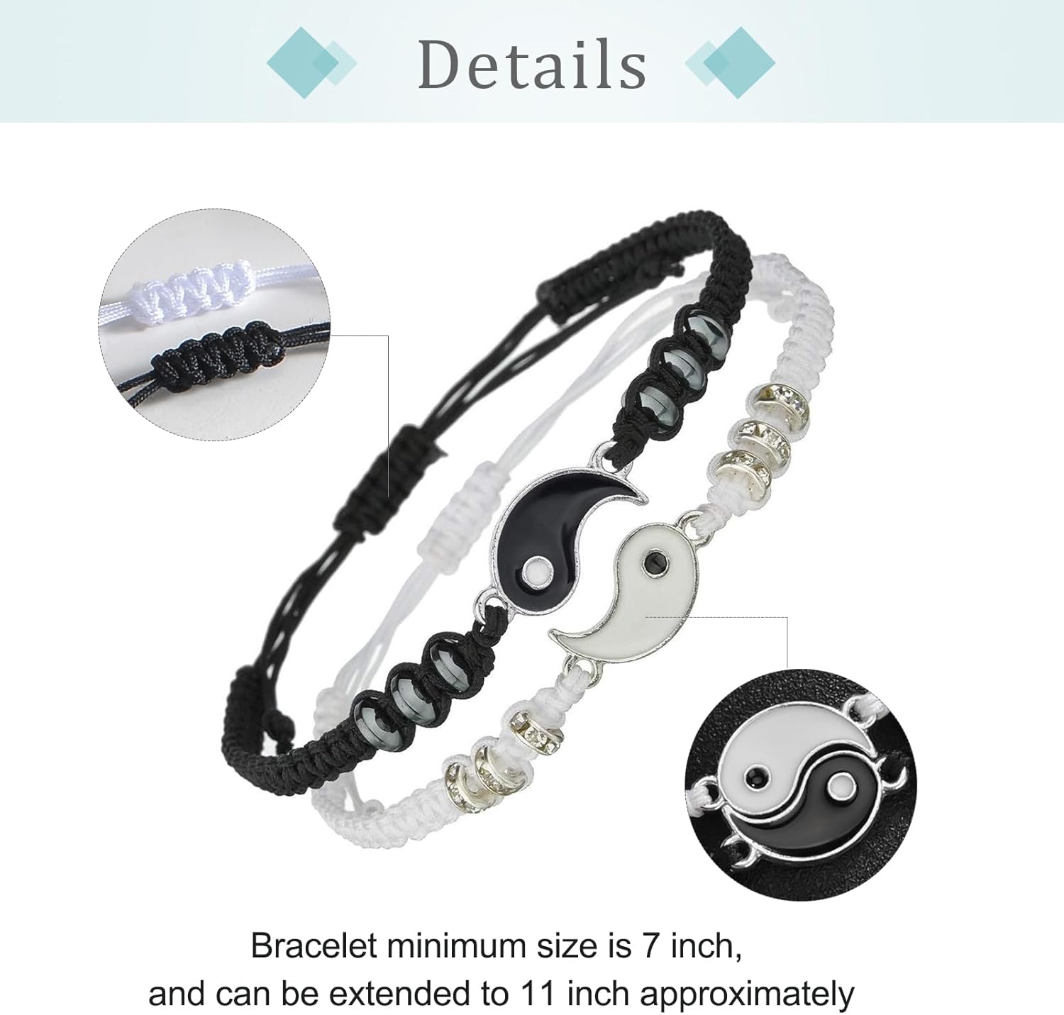 Introducing the perfect symbol of friendship and connection – the Best Friend Bracelets for 2 Matching Yin Yang Adjustable Cord Bracelets. This set of bracelets is a meaningful way to celebrate your bond with your best friend, partner, or loved one.